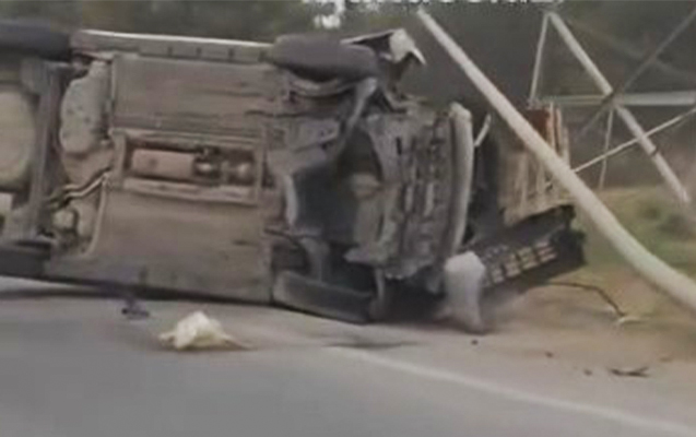 Qutb.az xəbər verir ki, sürücünün idarəetməsindən çıxan “Nissan” markalı avtomobil işıq dirəyinə çırpılaraq çevrilib.
